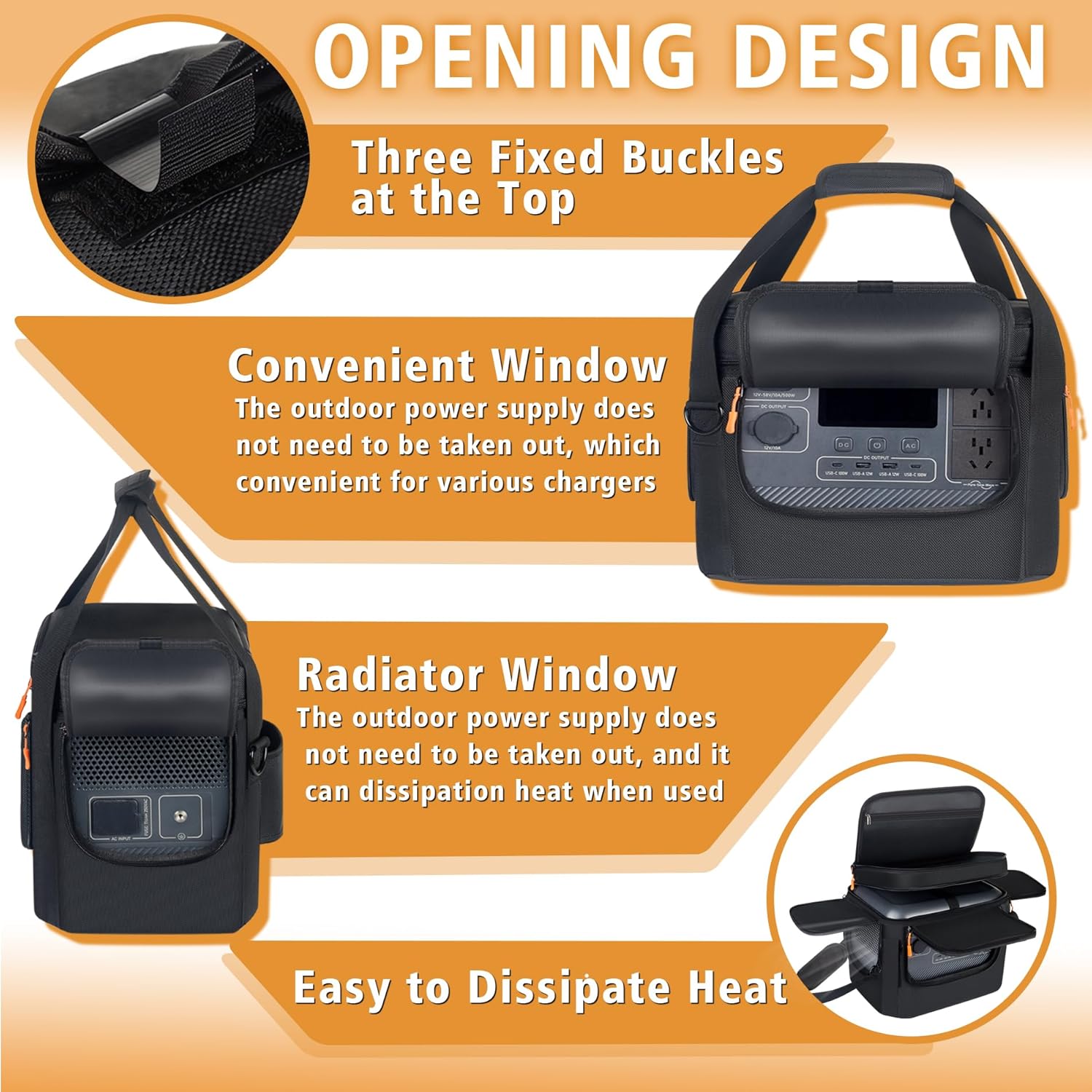 Opening Design: The zippers on each side, on the top, and in the front are strong and glide smoothly. You can use the power station without removing it from the case, so they provide ventilation openings and charging access through the opening