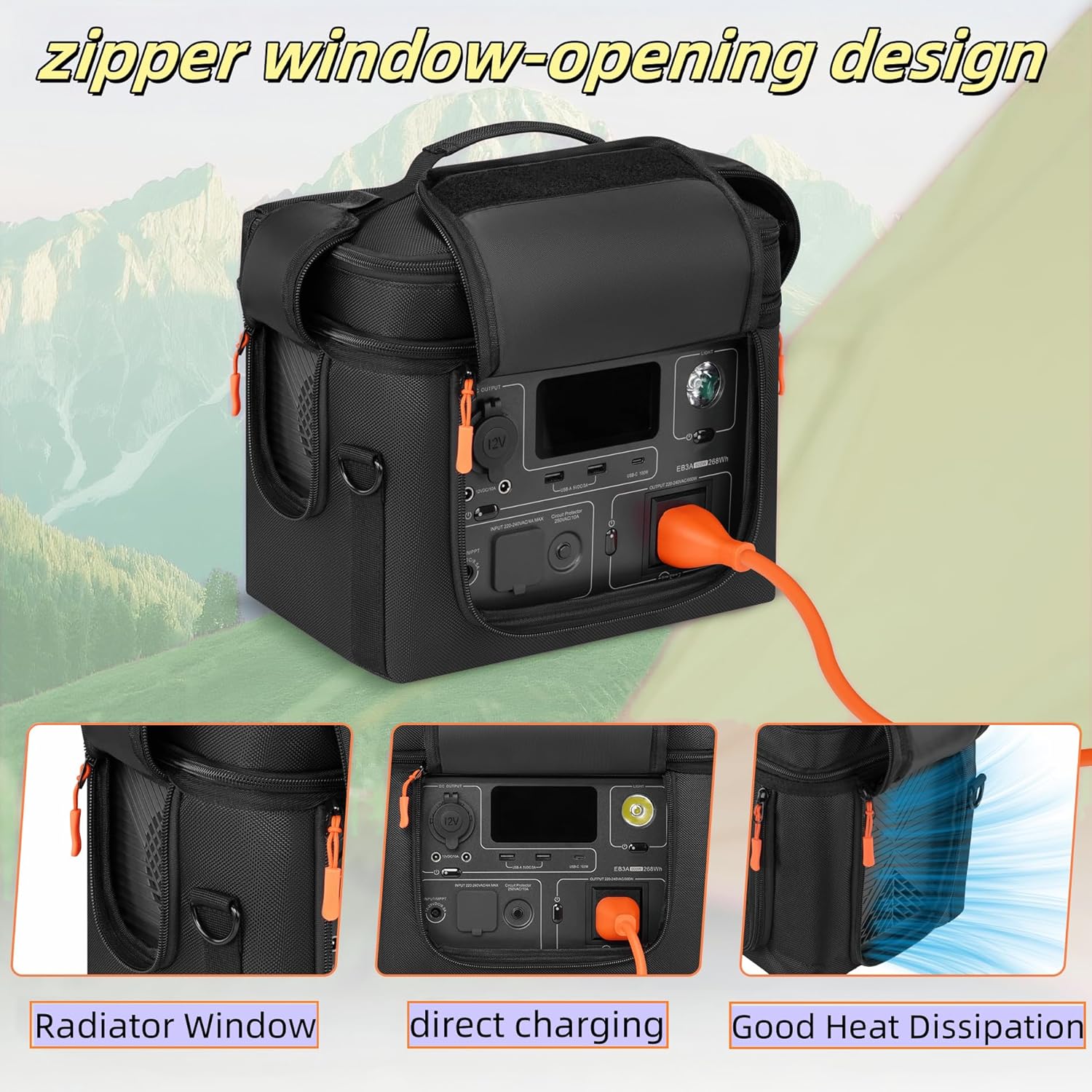 Convenient In-Bag Operation & Heat Management Features a front zippered opening that allows you to access and use the power station directly inside the bag—no need to remove the device, and you can clearly view the screen data for real-time monitoring. A side zippered vent is added to help dissipate heat when the power station is in use, which helps maintain device performance during extended operation
